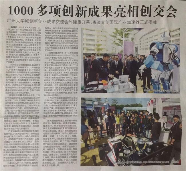 2017年12月1日上午,由中共番禺區(qū)委員會、番禺區(qū)人民政府聯(lián)合舉辦的2017年廣州大學(xué)城創(chuàng)新創(chuàng)業(yè)成果交流會暨番禺名企就業(yè)實習(xí)精準(zhǔn)對接會、大學(xué)城創(chuàng)客節(jié)系列活動在大學(xué)城隆重舉行。番禺區(qū)創(chuàng)新科技企業(yè)協(xié)會組織區(qū)內(nèi)多家會員企業(yè)參加創(chuàng)新創(chuàng)業(yè)成果展示,其中包括:廣州番禺巨大汽車音響設(shè)備有限公司(常務(wù)副會長單位)、廣州市浩洋電子股份有限公司(常務(wù)副會長單位)、廣州市銳豐音響科技股份有限公司(副會長單位)、廣州市大廣建材有限公司(副會長單位)、廣東好太太科技集團(tuán)股份有限公司(理事單位)、廣州京誠檢測技術(shù)有限公司(理事單位)、廣州市原子創(chuàng)客文化傳播有限公司(理事單位)、廣東派勒智能納米科技股份有限公司(會員單位)、廣州市藝強(qiáng)電器有限公司(會員單位)、廣州誠鼎機(jī)器人有限公司、廣州石頭造環(huán)保科技有限公司、廣州暢德科技有限公司等。開幕式結(jié)束后,省、市、區(qū)領(lǐng)導(dǎo)親臨創(chuàng)新企業(yè)展位參觀與指導(dǎo),并給予企業(yè)充分肯定。
