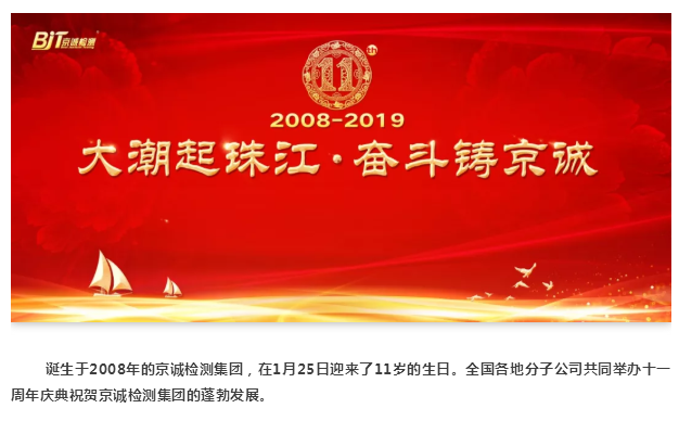 在春節(jié)來臨之際,我們共同祝賀京誠(chéng)檢測(cè)集團(tuán)不斷地發(fā)展壯大,共同祝賀京誠(chéng)檢測(cè)集團(tuán)十一周歲生日快樂。
