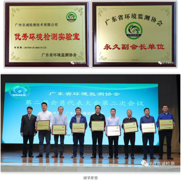 2019年3月1日,廣東省環(huán)境監(jiān)測(cè)協(xié)會(huì)第二屆會(huì)員代表大會(huì)第二次會(huì)議在廣州召開(kāi),京誠(chéng)檢測(cè)集團(tuán)廣州公司成功當(dāng)選為廣東省環(huán)境監(jiān)測(cè)協(xié)會(huì)永久副會(huì)長(zhǎng)單位,并獲頒優(yōu)秀環(huán)境監(jiān)測(cè)實(shí)驗(yàn)室榮譽(yù)稱(chēng)號(hào)。廣東省生態(tài)環(huán)境廳宣教處處長(zhǎng)許金洲、廣東環(huán)境保護(hù)工程職業(yè)學(xué)院副院長(zhǎng)劉曉冰、廣東省環(huán)境監(jiān)測(cè)中心副主任向運(yùn)榮到會(huì)祝賀。