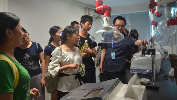 緊接著,學生們分為兩組參觀我司實驗室,面對一排排大型儀器以及身穿白大褂的實驗員,同學們顯得異常興奮,紛紛搶著拍照和發(fā)問。吳博士和宋經(jīng)理則從環(huán)境檢測及食品檢測兩項業(yè)務(wù)的整個檢測流程進行了詳細講解。整潔干凈的辦公環(huán)境、專業(yè)認真的實驗人員、陳列有序的樣品室、熟練穩(wěn)健的實驗操作,讓師生們整體感知BjT京誠檢測企業(yè)文化,充分展現(xiàn)京誠人嚴謹而活潑的精神面貌。