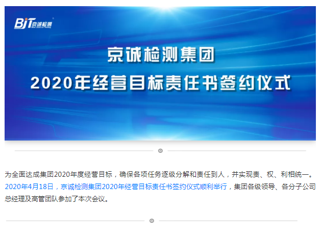 京誠檢測集團2020年經(jīng)營目標責任書簽約儀式圓滿成功