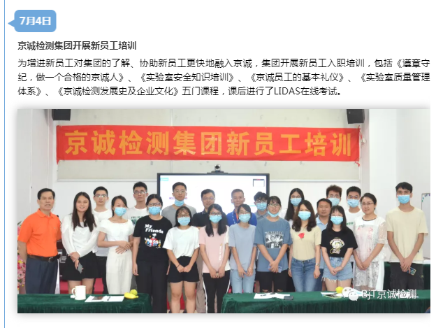簡(jiǎn)訊 | 京誠(chéng)檢測(cè)集團(tuán)2020年7月新聞簡(jiǎn)訊