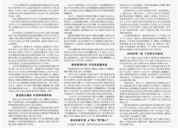 我國現(xiàn)已成為全球最大、最重要的檢驗認證市場,然而與其巨大的市場規(guī)模不相匹配的是我國檢驗認證行業(yè)“小散弱”的問題依然存在,沒有真正培育出具有全球影響力的檢驗認證民族品牌。探索如何推動檢驗認證機構(gòu)做強、做優(yōu)、做大,是引領(lǐng)檢驗認證行業(yè)高質(zhì)量發(fā)展、夯實建設(shè)制造強國、質(zhì)量強國的一項重要課題。2016年11月9日,肩負著央企重任和中國建材集團厚望的中國建材檢驗認證集團股份有限公司(以下簡稱國檢集團)在上海證券交易所掛牌上市,成為A股首家集檢驗、認證于一體的國有控股企業(yè)。5年來,國檢集團在公司治理、科技創(chuàng)新、聯(lián)合重組、激發(fā)動能、企業(yè)文化及社會責(zé)任等方面多點開花,探索出一條從專業(yè)性檢驗認證機構(gòu)向綜合性國際化檢驗認證集團轉(zhuǎn)變的全新道路,給市場交上了一份令人滿意的答卷。