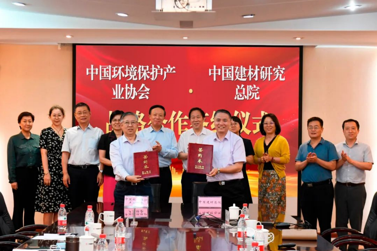 2022年7月15日,中國(guó)建材總院與中國(guó)環(huán)境保護(hù)產(chǎn)業(yè)協(xié)會(huì)(以下簡(jiǎn)稱(chēng):中環(huán)協(xié))在京舉行戰(zhàn)略合作協(xié)議簽約儀式。中國(guó)建材總院黨委書(shū)記、董事長(zhǎng)馬振珠,中環(huán)協(xié)黨委書(shū)記、會(huì)長(zhǎng)郭承站出席簽約儀式并見(jiàn)證簽約。中國(guó)建材總院副總經(jīng)理武發(fā)德與中環(huán)協(xié)副會(huì)長(zhǎng)兼秘書(shū)長(zhǎng)滕建禮代表雙方簽署協(xié)議。中環(huán)協(xié)副會(huì)長(zhǎng)李蕾、副秘書(shū)長(zhǎng)燕中凱,國(guó)檢集團(tuán)紀(jì)委書(shū)記陳璐參加了簽約儀式。