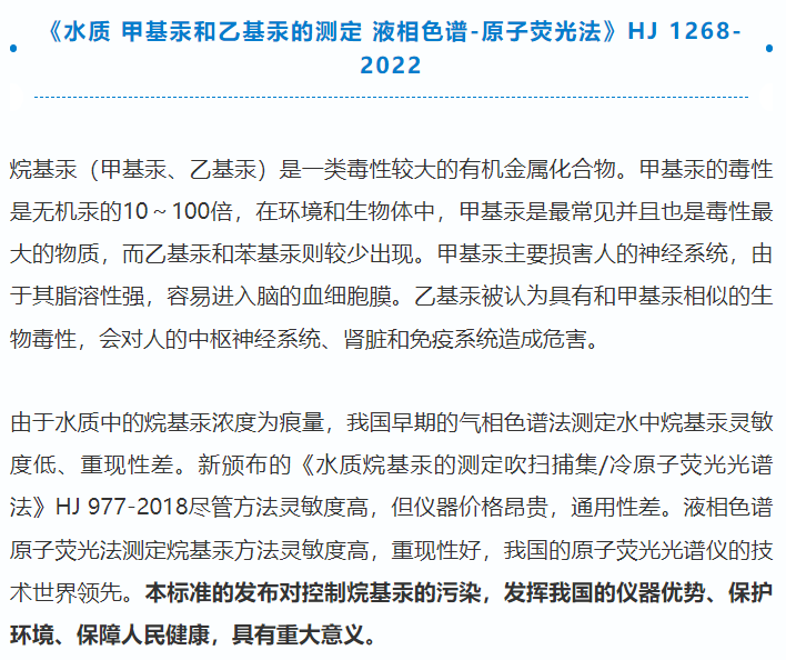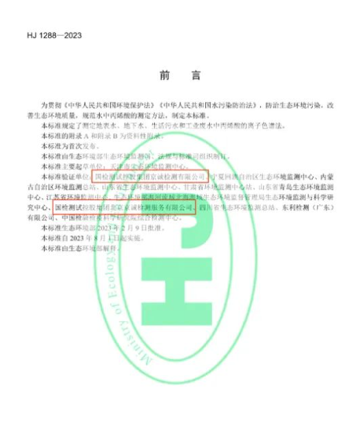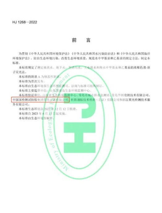 近日,國檢京誠青島公司參與驗證的生態(tài)環(huán)境標準《水質(zhì) 甲基汞和乙基汞的測定 液相色譜-原子熒光法》HJ 1268-2022正式發(fā)布,于2023年6月15日正式實施;國檢京誠廣州公司和北京公司參與驗證的《水質(zhì) 丙烯酸的測定 離子色譜法》HJ 1288-2023正式發(fā)布,于2023年8月1日正式實施。