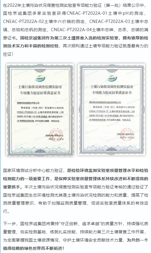 近日,國(guó)檢京誠(chéng)集團(tuán)廣州公司、湖南公司順利通過(guò)CNEAC-PT2022A-12土壤中揮發(fā)性有機(jī)物(GB 36600-2018表1中28種)項(xiàng)目能力驗(yàn)證考核,并獲得“滿意”結(jié)果!