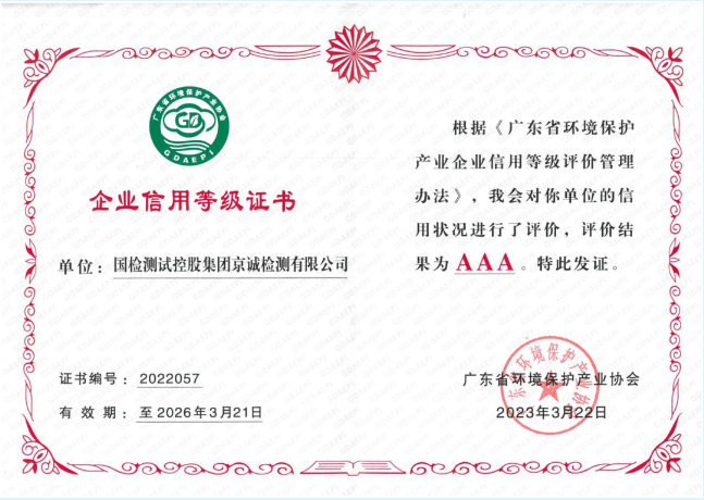 近日,廣東省環(huán)境保護產(chǎn)業(yè)協(xié)會公布了2022年第三批廣東省環(huán)境保護產(chǎn)業(yè)企業(yè)信用等級評價結(jié)果名單,國檢測試控股集團京誠檢測有限公司憑借自身綜合實力和良好的企業(yè)信用口碑,榮獲“廣東省環(huán)保產(chǎn)業(yè)AAA級信用企業(yè)”稱號!