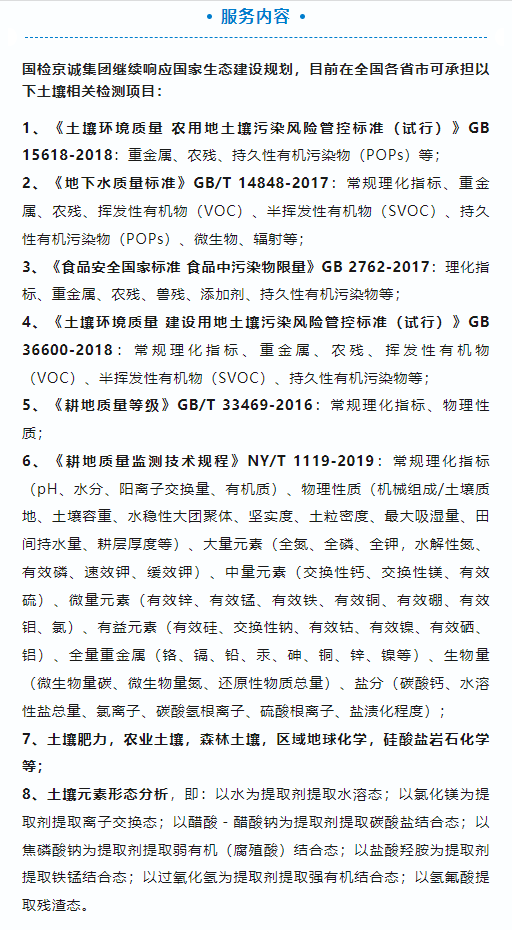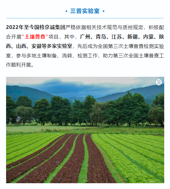 2023年6月25日是第33個全國“土地日”,主題是“節(jié)約集約用地 嚴守耕地紅線”。國檢京誠集團具備全面的土壤生態(tài)環(huán)境檢測能力,可以為監(jiān)督防止地下水污染,指導農(nóng)村生態(tài)環(huán)境保護和農(nóng)村生態(tài)環(huán)境綜合整治,監(jiān)督指導農(nóng)業(yè)面源污染治理等工作提供數(shù)據(jù)支撐,助力嚴守耕地紅線,為生態(tài)文明建設新時代貢獻力量。