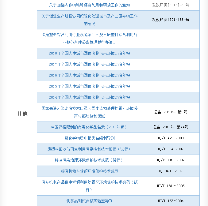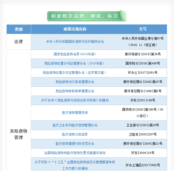我國固體廢物污染防治的相關(guān)法律、制度、標準匯總