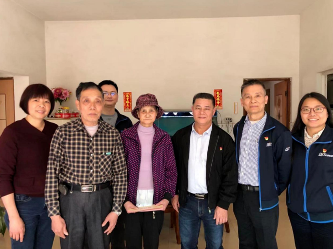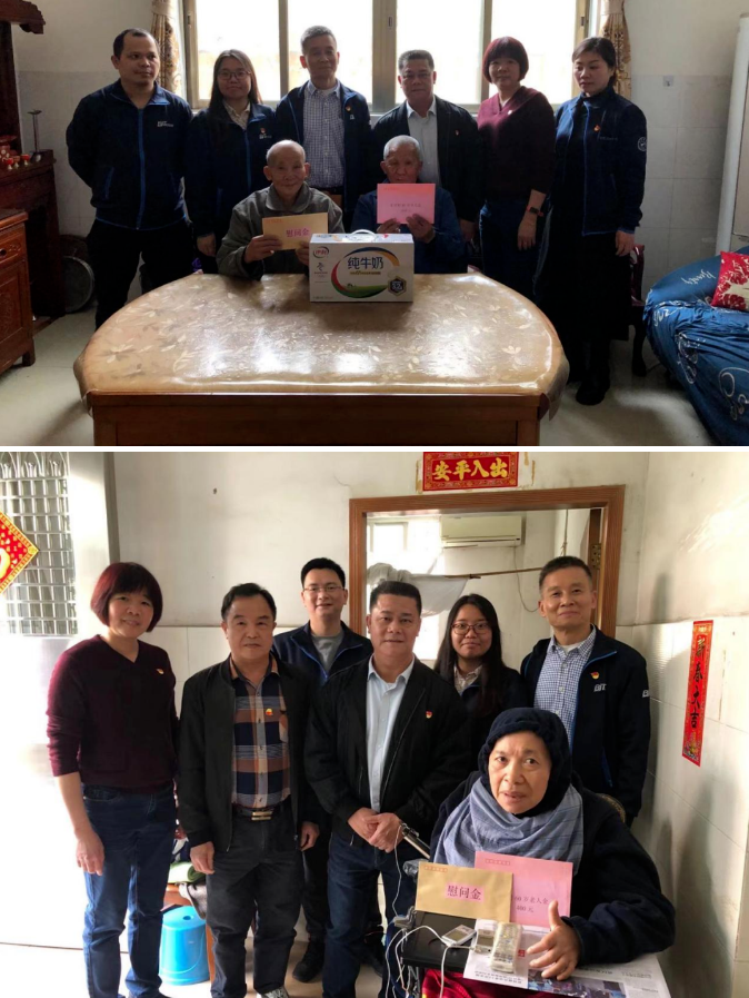當(dāng)天下午,國檢京誠集團(tuán)廣州公司黨支部五名黨員代表到何氏宗祠,慰問東沙村梁燕芳、袁碟兩位百歲孤寡老人,與街道辦領(lǐng)導(dǎo)、東沙村黨支部代表及兩位老人親屬,共聚一堂。在歡快樂曲和熱情祝福中,兩位同年同月同日生的老人度過100歲大壽幸福時光。隨后黨支部和東沙村總支部等分別走訪朱鎮(zhèn)同、黃志文、黃杏款殘疾人員,送上黨對殘疾人員關(guān)懷和慰問,祝福他們生活幸福健康長壽!