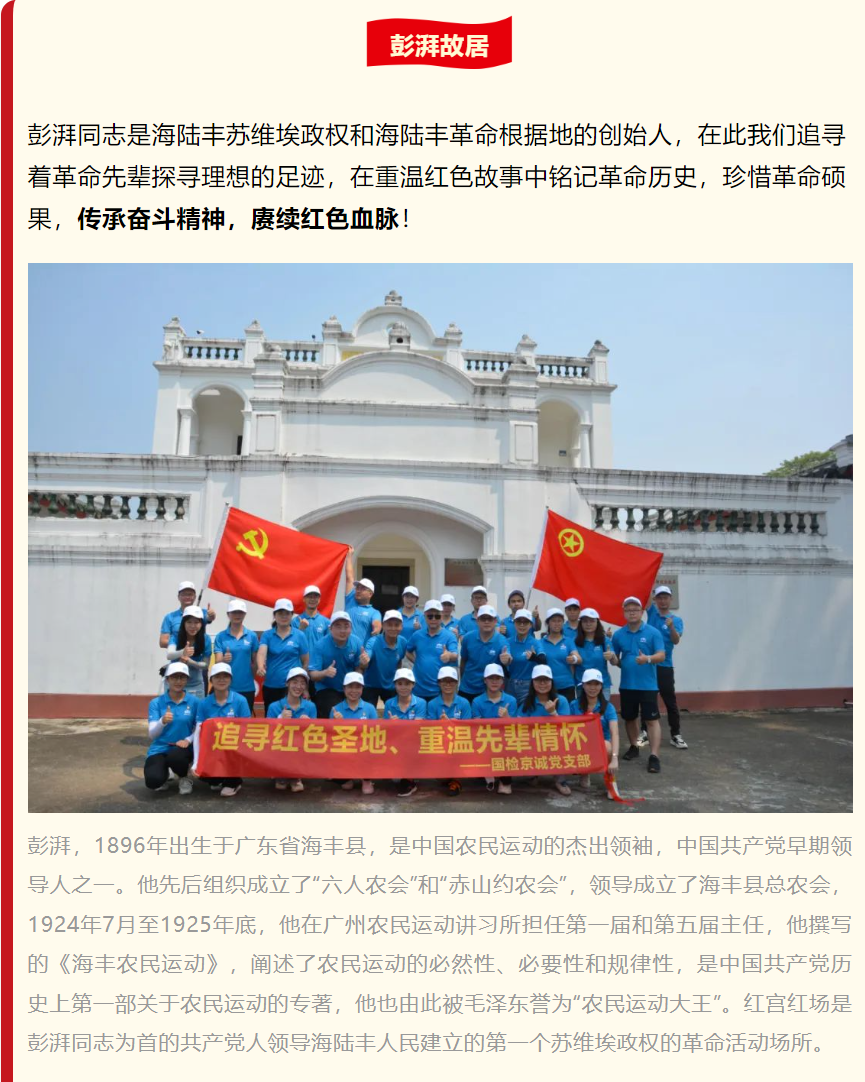 回望歷史來路、追尋紅色圣地。9月17日至18日,于九一八事變爆發(fā)91年之際,國檢京誠黨支部開展“紅色汕尾行”活動,公司黨員干部、入黨積極分子30余人參加了此次活動。
